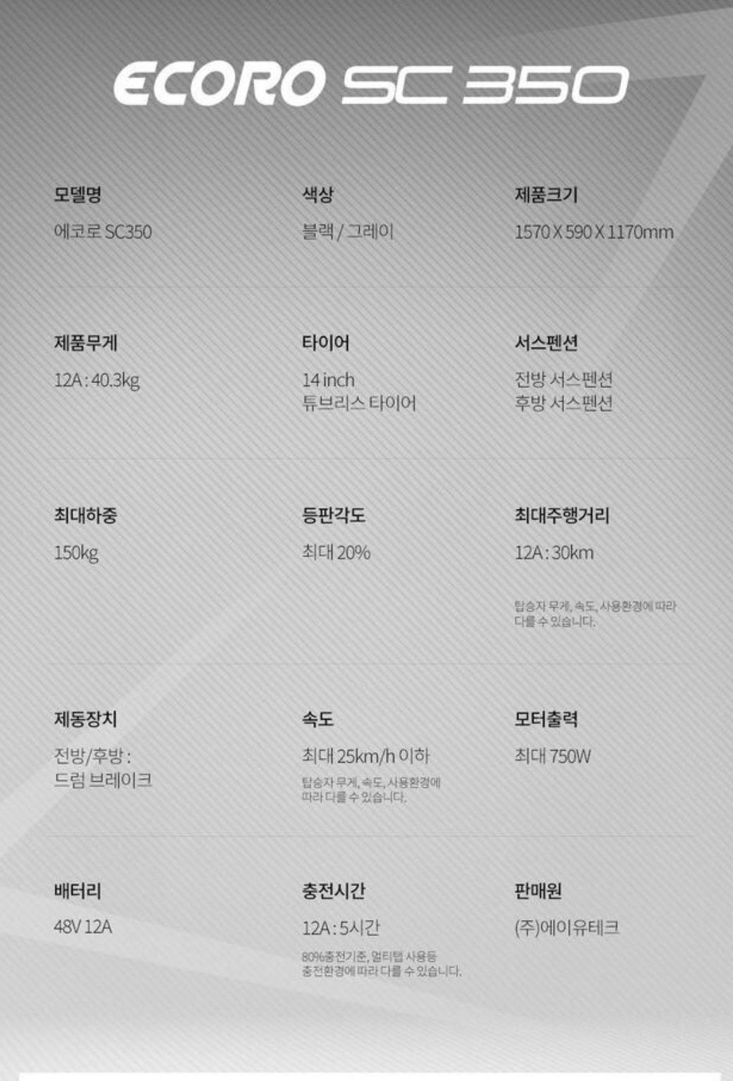 [운행조건] 최고속도: 25km/h/주행거리: 35km/충전시간: 7시간